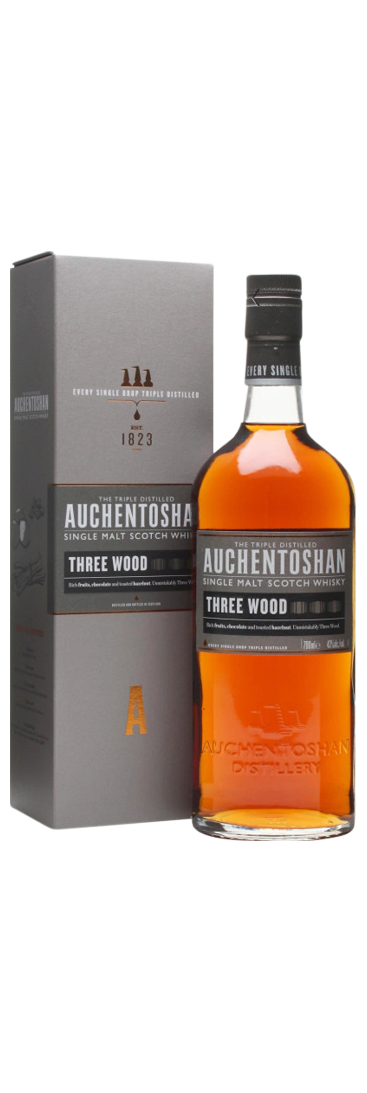 Founded by Irish refugees in 1825 on the outskirts of Glasgow, Auchentoshan is one of the last active distilleries in the Lowlands of Scotland. In common with other Lowland and Irish whiskies Auchentoshan malt whisky is distilled three times (as opposed to most Scottish malt whisky which is distilled twice). This triple-distillation has the effect of softening the flavour and body of the end product.